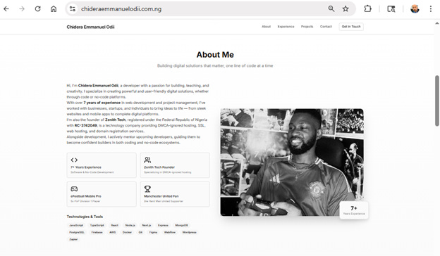 Looking up the domain registration details via a WHOIS client, the AA419 team were able to obtain a registrant email address and partial contact data. They also learned that Anitahost provided nameservers for the scam domain. They used the registrant email at WHOXY to identify Childera Emmanuel Odii, and found a website of owner Chidera Emmanuel at hXXps://www[.]chideraemmanuelodii[.]com[.]ng/.